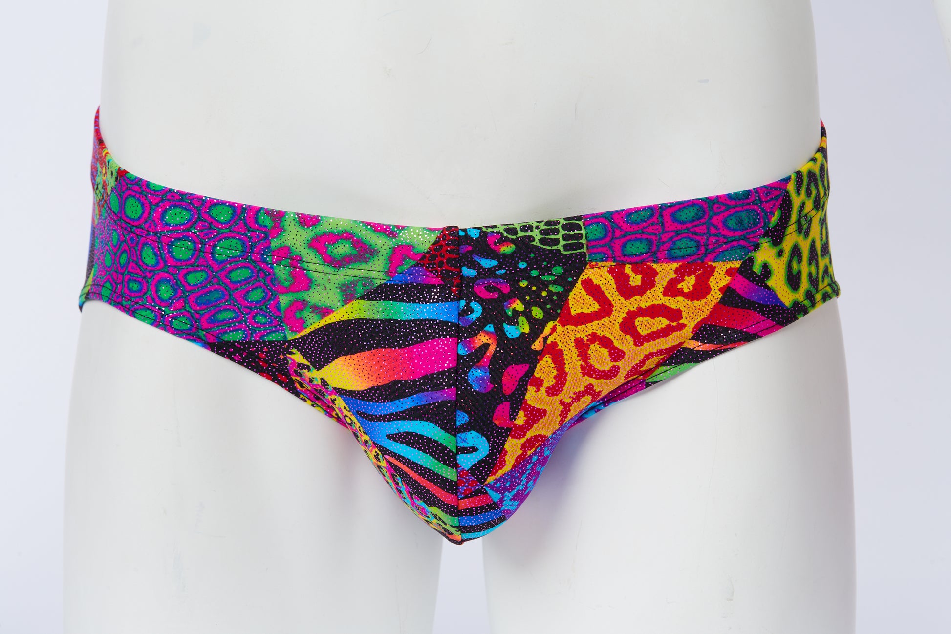 The Shokra Men's swim brief is made of high a quality printed lycra. There is an extra fabric liner sewn in the front pouch for modesty and comfort. The waistband is reinforced with 1" elastic and the leg openings have 1/4".