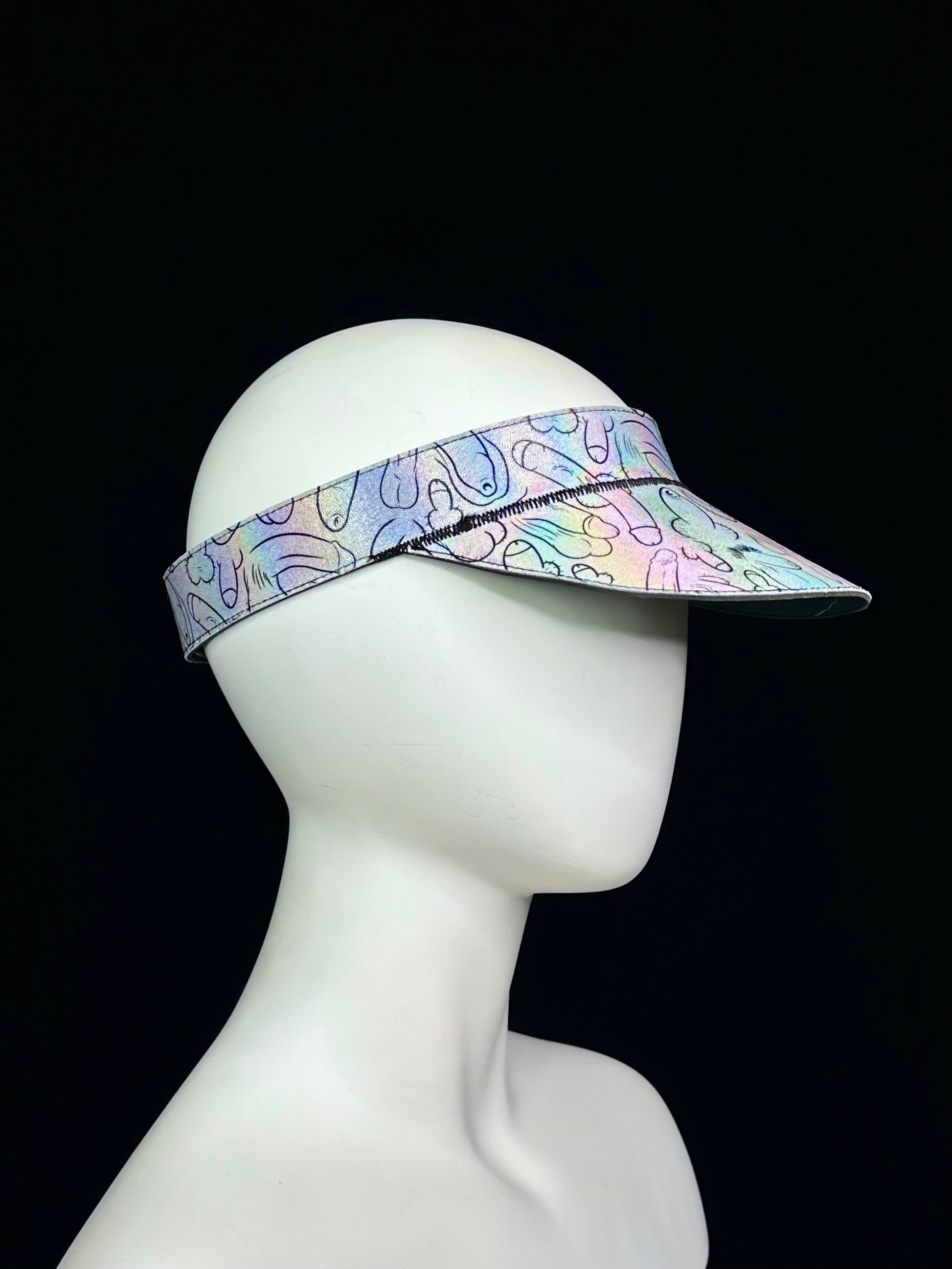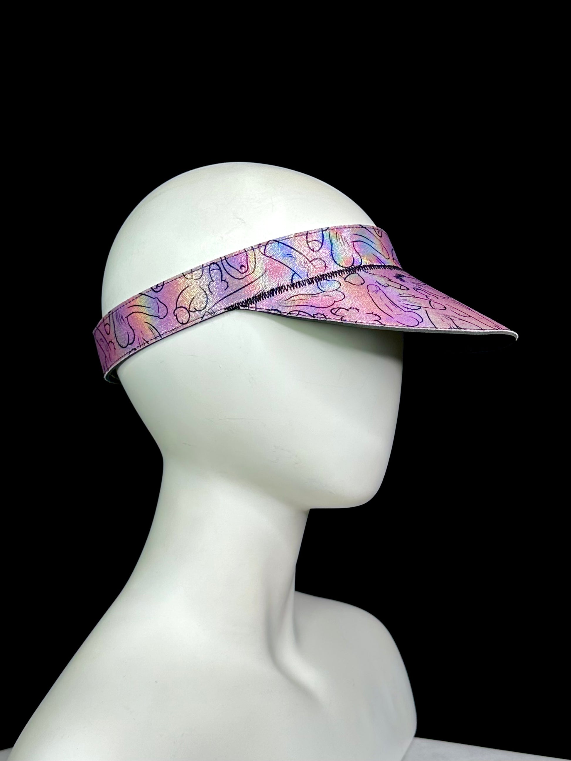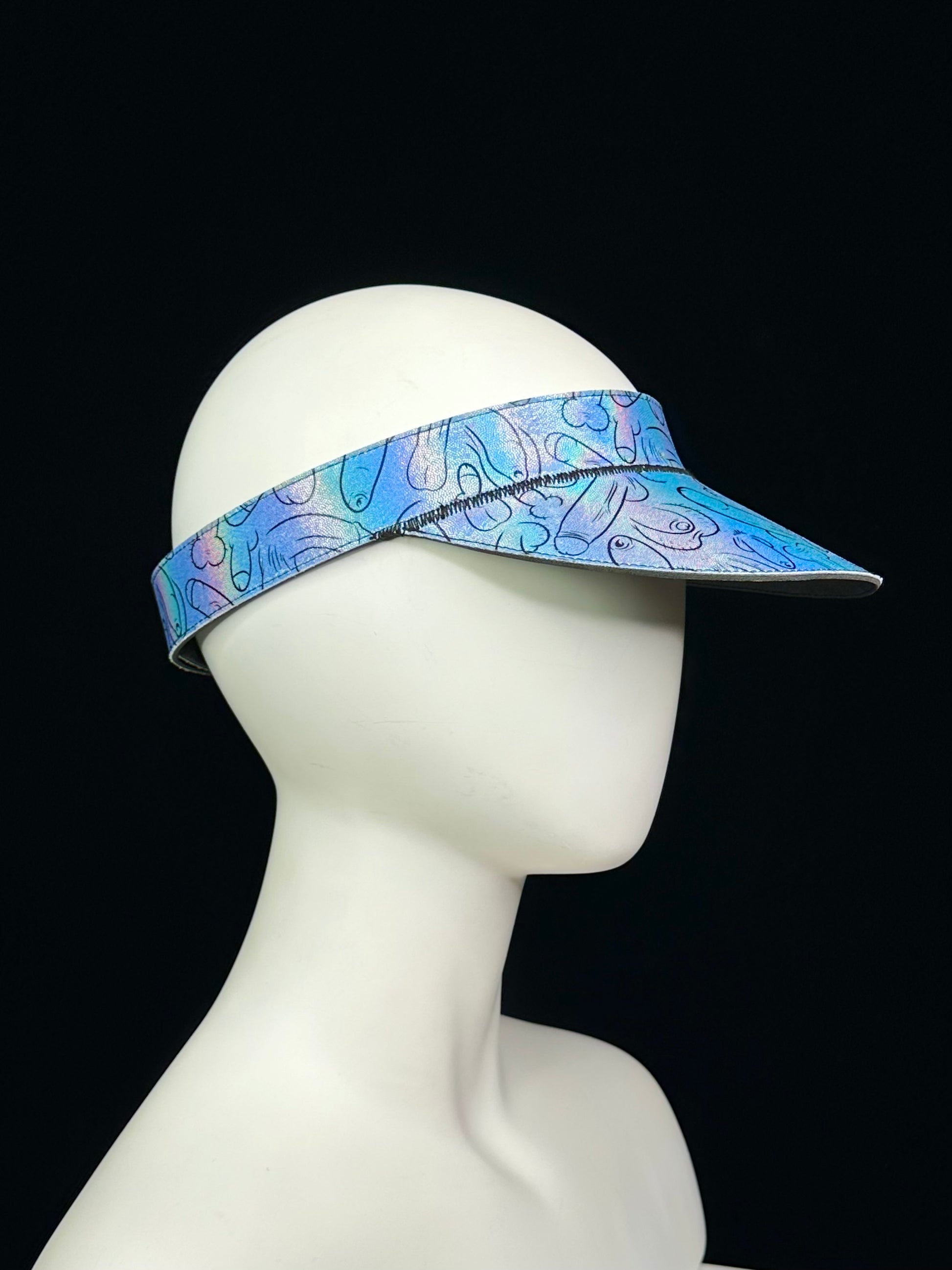 The Shokra visor is made of a high printed lycra that's been backed with a sturdy faux leather material. The band and bill are both edge stitched for durability and design detail.